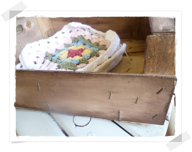 Oh, und gestern abend habe ich noch so ein Sperrholzobstkistchen auf alt getrimmt, jetzt mag ich es noch bedrucken, da muss ich aber erst die Schablone machen, wird aber bestimmt ganz gut. Erstmal kommen meine Grannys da rein und danach vielleicht Kräuter o.Ä.