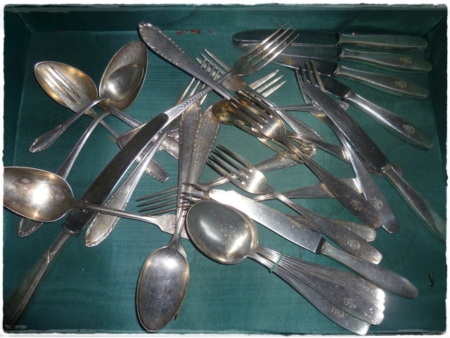 Jetzt muss ich mal schauen, mit welcher Politur ich das Besteck wieder tischfein bekomme, kennt sich da jemand aus?`Einige Teile lasse ich aber so, die Patina macht sich gut an den Stücken, die zur Deko eingesetzt werden.