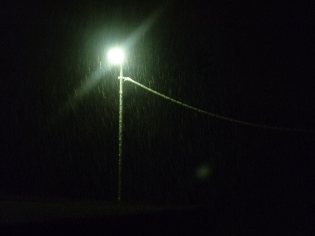 Kann man's erkennen? Sogar die Stromkabel sind überzogen und der Lampenmast! Und es schneit weiter und weiter, ich könnt ausflippen vor Freude, das ist so gemütlich! Morgen früh werde ich gleich richtige Bilder machen, das hat so ja keinen Wert ;)